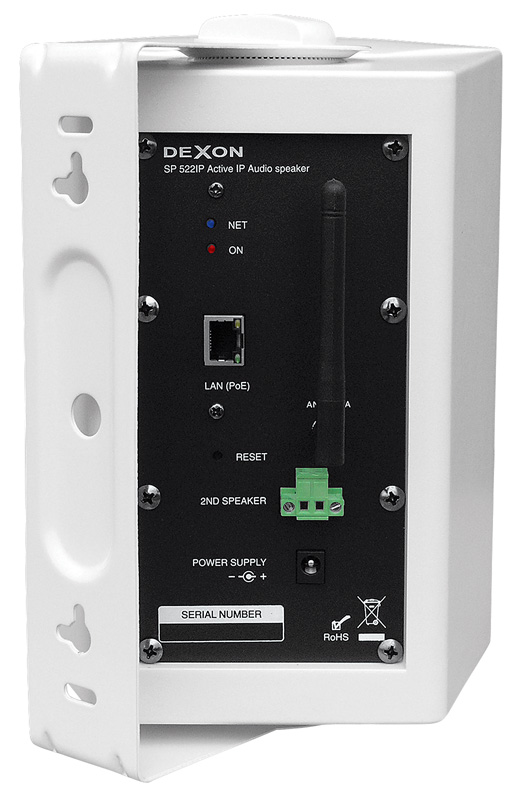 Reprosoustava je vybavena zesilovačem a rozhraním systému Dexon IP Audio. Její napojení je možné ethernetem spolu s PoE+ napájením, ale také přes bezdrátové WiFi spojení kdy se pro napájení použije adaptér. Zajímavá je také SIP konektivita, kdy je možné se do reprosoustavy dovolat přes VoIP telefonii. Reprosoustava disponuje výstupem na další pasivní reprosoustavu.